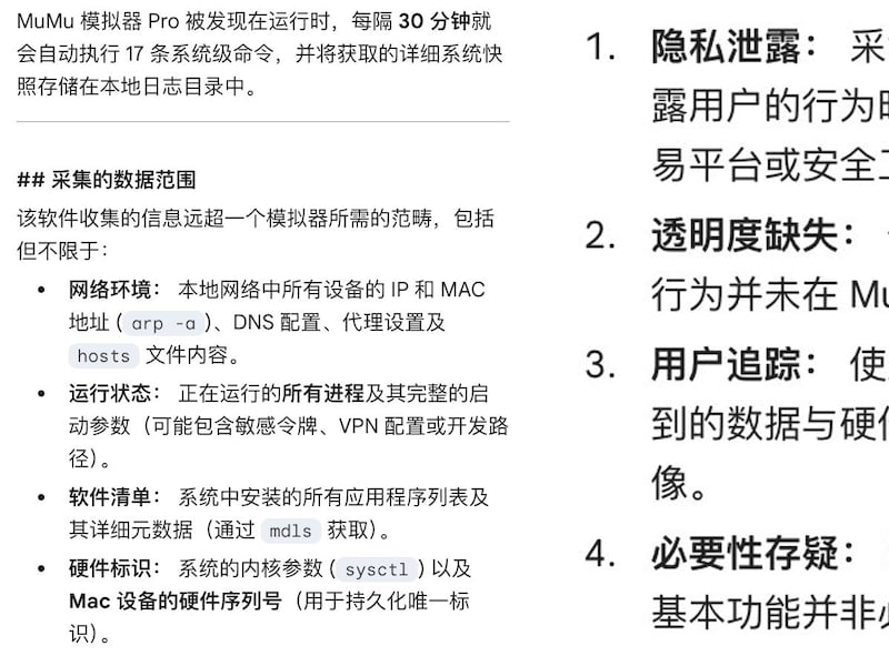 中国互联网公司网易推出的macOS版安卓模拟器MuMu Player Pro被指在后台周期性读取系统信息,引发社交平台X、Reddit及技术社区讨论和质疑。相关说法目前尚未获得独立安全机构的完整审计确认。