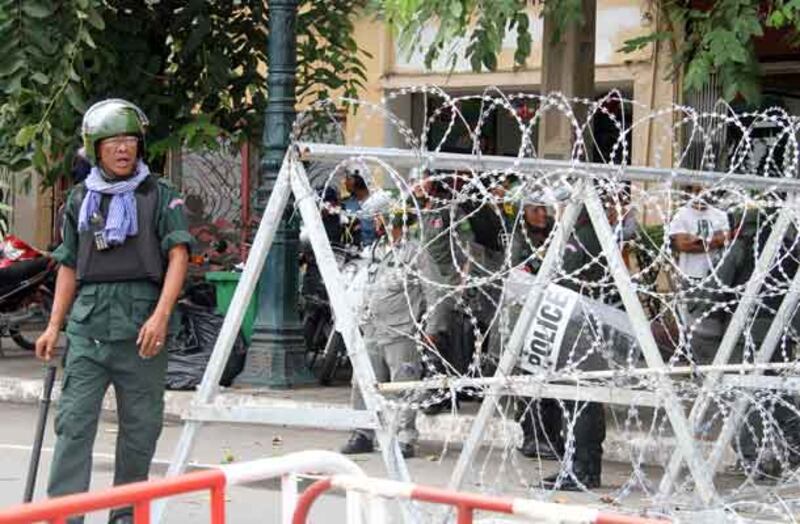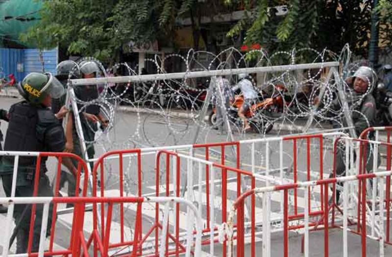 ២២-សមត្ថកិច្ចបានដាក់លួសបន្លានៅកណ្ដាលផ្លូវ ដើម្បីរារាំងក្រុមការងារដើម្បីសន្តិភាព។