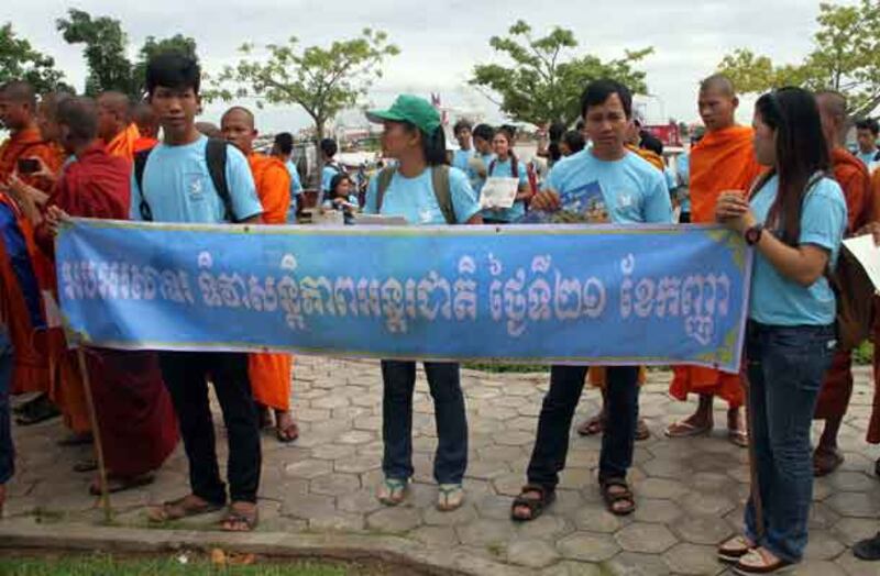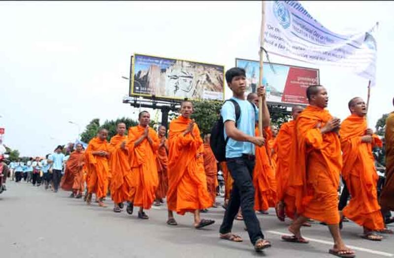 ១៥-ព្រះសង្ឃ និងក្រុមការងារដើម្បីសន្តិភាព ធ្វើធម្មយាត្រាទៅកាន់មុខព្រះបរមរាជវាំង។