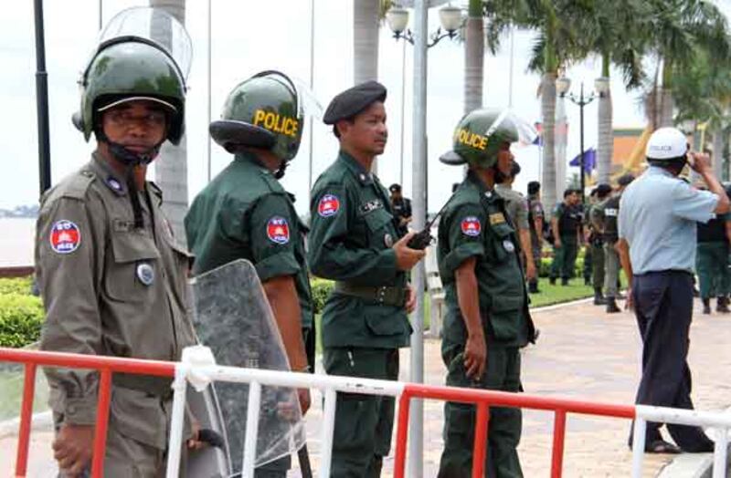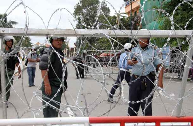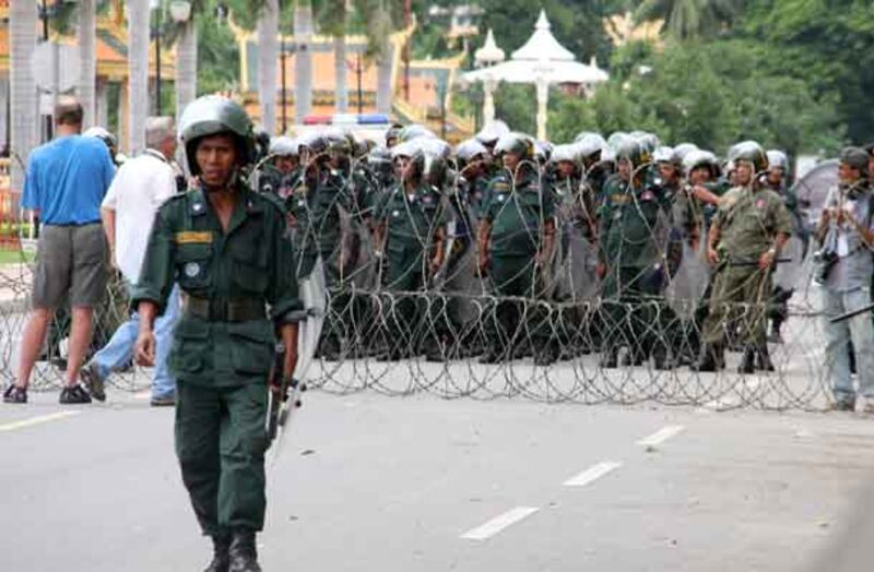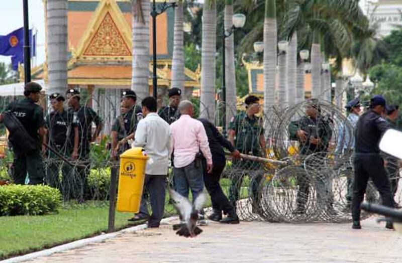 ២១-សមត្ថកិច្ចកំពុងរាយលួសបន្លានៅសួនច្បារក្បែរព្រះបរមរាជវាំង។