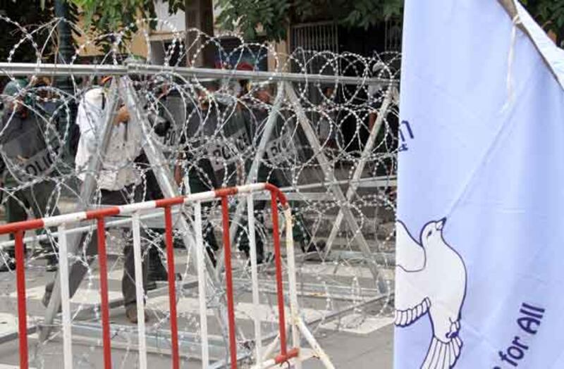 ១៧-លួសបន្លាបានរាយរួចជាស្រេចដើម្បីរារាំងក្រុមធម្មយាត្រាដើម្បីសន្តិភាព។