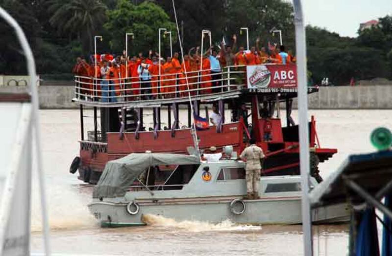 ១៣-ក្រុមសមត្ថកិច្ចរារាំងក្រុមការងារដើម្បីសន្តិភាព និងព្រះសង្ឃមិនឲ្យជិះទូក។