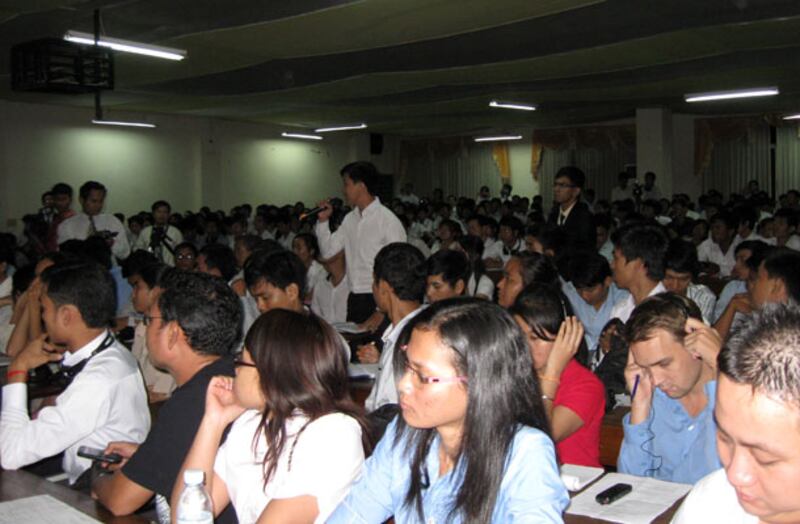 សំណួរទាំងនេះ ធ្វើឲ្យមានការអបអរសាទរពីនិស្សិតដែលចូលរួមស្ដាប់នៅក្នុងបន្ទប់សន្និសីទនោះ។