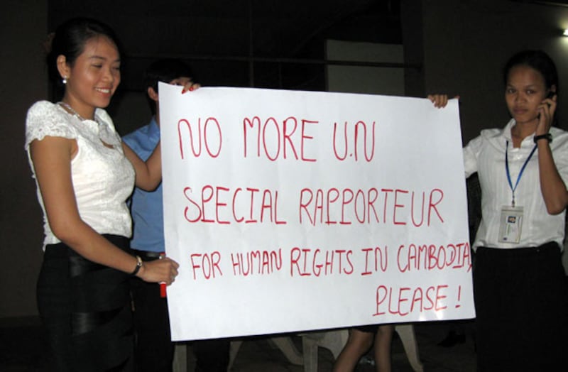 ៤-និស្សិតលើកបដាសុំឲ្យលុបចោលអ្នករាយការណ៍ពិសេសទទួលបន្ទុកសិទ្ធិមនុស្សនៅកម្ពុជា។