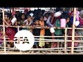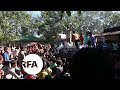 Rohingya refugees try to grab relief supplies on the