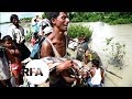 Two Rohingya boys gather firewood and cross the “no man’s