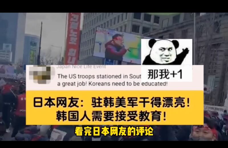 影片以字幕“最近在外网上又刷到一个视频,宇宙第一强国的老百姓,又被他们的保镳殴打了”开场,搭配两段韩国民众静坐与游行的影片,但并未出现驻韩美军殴人的相关画面或是新闻画面。这部影片上传迄今,收获了两万七千次点赞,超过九百次转发。