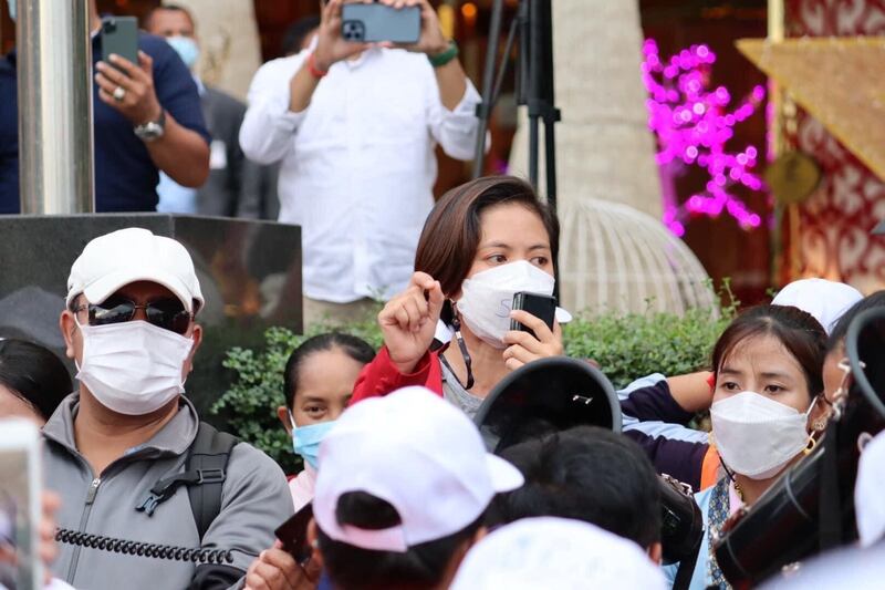 Chhim Sithar說:不管是穿著制服或便服,或保安部隊,我們不清楚他們的身份及來自哪裡,但是他們公開毆打、拘捕我們的成員,而且大多數是女人,在街上每個人都見到,有員工拍下照片及影片,但他們沒有任何後果。