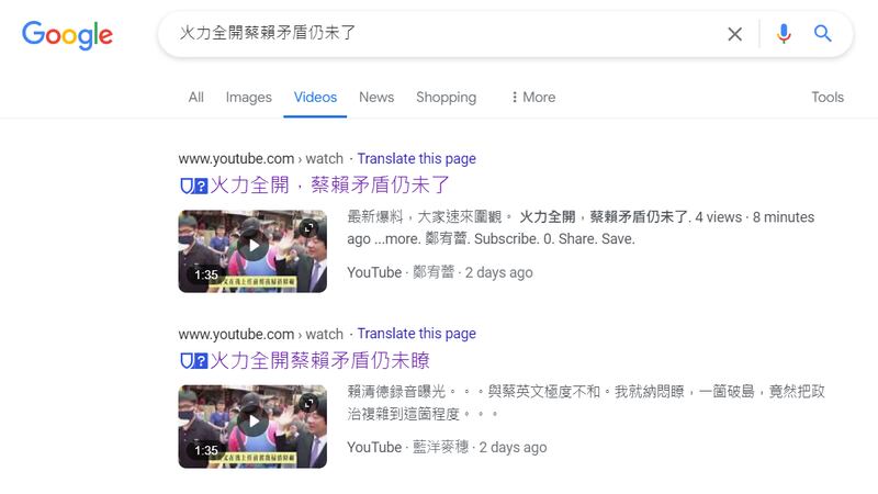 進一步追溯源頭,亞洲事實查核實驗室發現,再早一天的5月19日,YouTube平台上兩個分別叫「 藍洋麥穗」與「 鄭宥蕾」的帳號都上傳了該影片,而這兩個帳號都是在註冊當天就上傳這則影片。