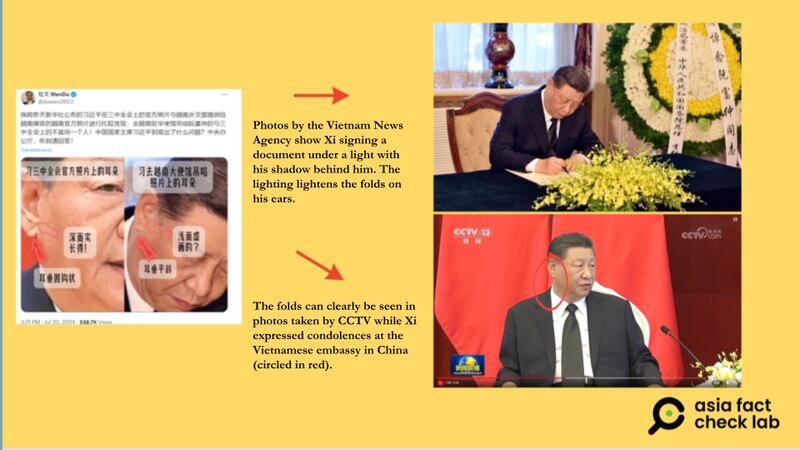 A claim about Xi using a body double due to health issues emerged again in late July when a X user shared a CCTV report on Xi’s meeting East Timor’s head of state, claiming that there were visual inconsistencies.