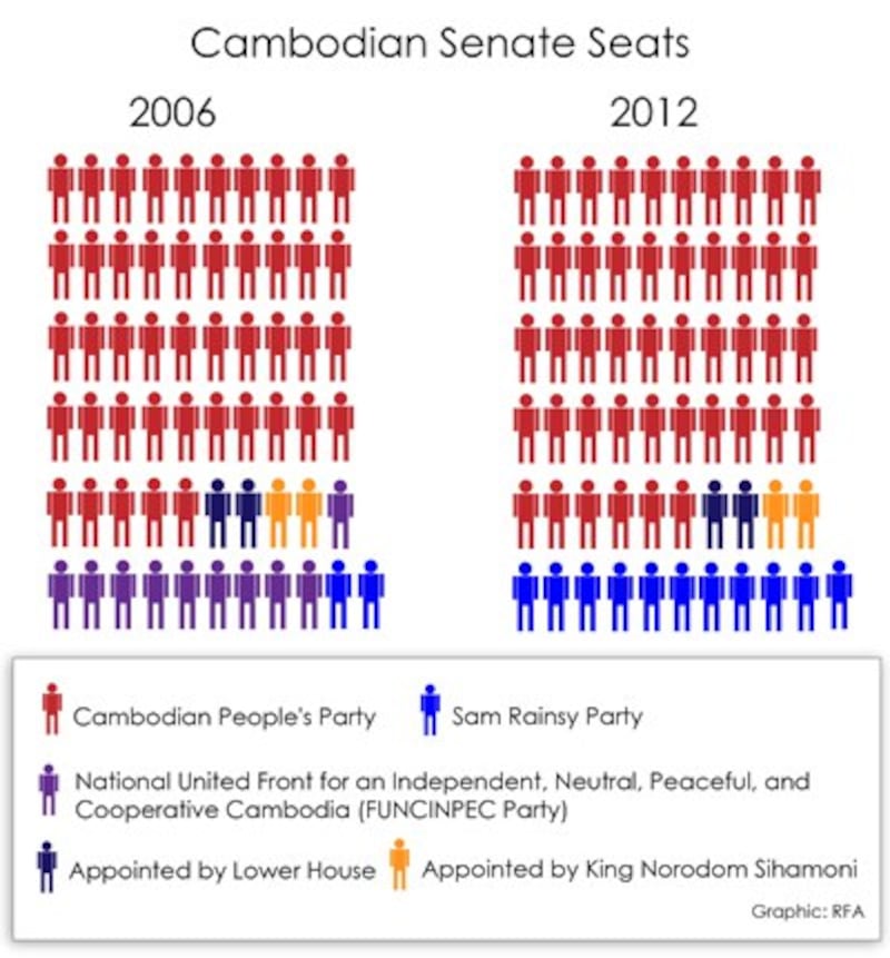 The opposition royalist FUNCINPEC Party, which had won 10 seats in the previous polls, declined to run for the election, along with the Human Rights Party and the Norodom Ranariddh Party. All three parties have registered commune councilors, but lacked sufficient votes at the provincial level to gain Senate seats.