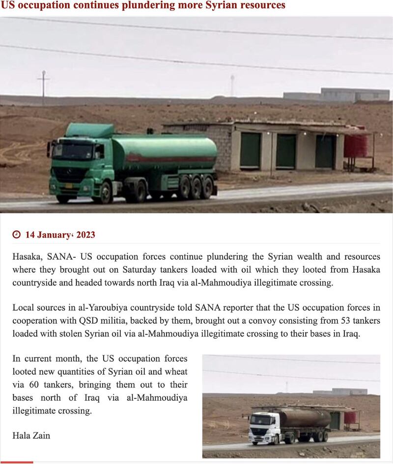 The information cited recently by the CCTV reporter in the Jan. 17 press conference followed a Jan. 14 report by the Syrian Arab News Agency. The SANA report cites anonymous local sources accusing the U.S. military of stealing 53 tankers of oil. The short report provides few details and only a single photo of an oil tanker. No explanation or sourcing accompanied the photo, and no mention was made of the agreement between the U.S. company and SDF.