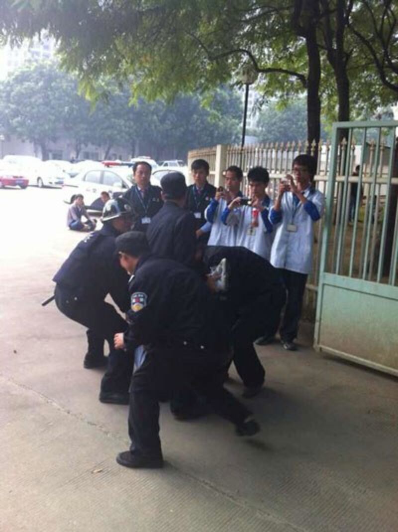 "Then they sent in the armed police to beat people up, and the workers surrounded their vehicles, so the police took some of us sitting in the front row away and beat them up."