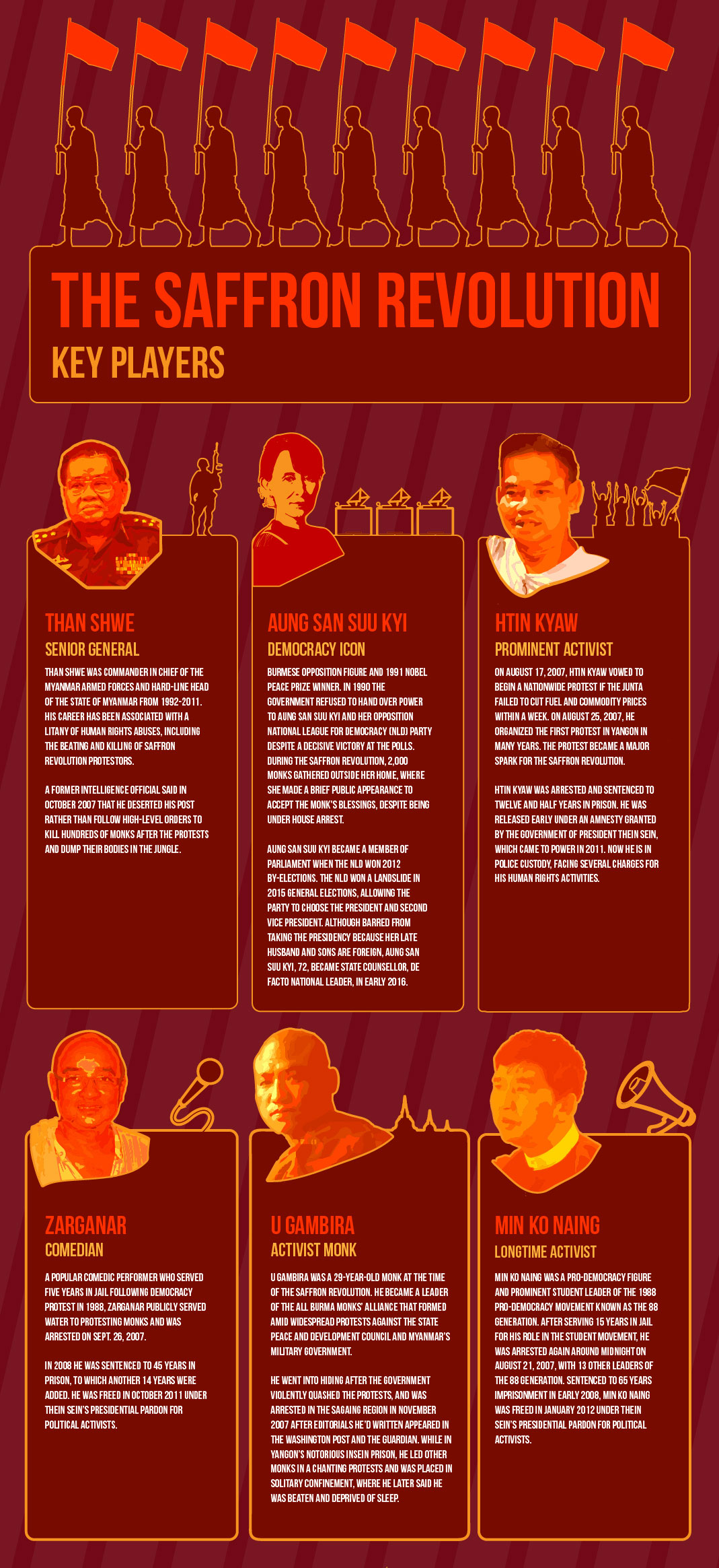 The Saffron Revolution was an important stepping stone in Myanmar’s march toward democratic rule. In 2015, democracy icon Aung San Suu Kyi’s National League for Democracy won general elections, becoming Myanmar’s first non-military government in 54 years.