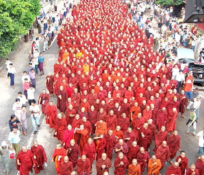 Mass protests erupted in Myanmar in 2007, sparked at first by widespread anger over a steep jump in fuel prices. But public ire quickly turned against the military government that had ruled the Southeast Asian nation with an iron fist for five decades. The protest movement was dubbed the ‘Saffron Revolution’ – named after the saffron-colored robes widely associated with Buddhist monks, who were at the forefront of the demonstrations.
