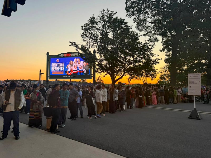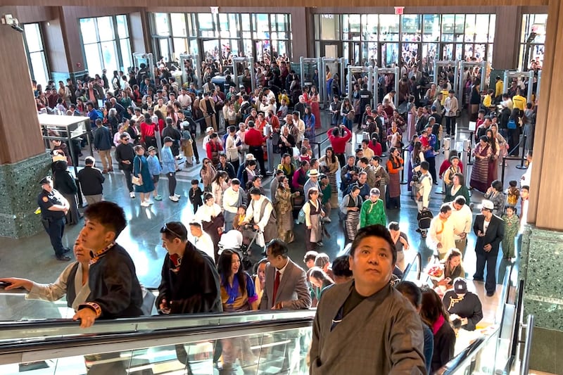 The Dalai Lama presides over a prayer ceremony, addressing more than 17,000 people gathered at the UBS Arena in New York, Aug. 22, 2024. (RFA Tibetan) People line up to hear the Dalai Lama preside over a prayer ceremony, addressing more than 17,000 people gathered at the UBS Arena in New York, Aug. 22, 2024. (RFA Tibetan) The Dalai Lama presides over a prayer ceremony, addressing more than 17,000 people gathered at the UBS Arena in New York, Aug. 22, 2024. (RFA Tibetan) The Dalai Lama presides over a prayer ceremony, addressing more than 17,000 people gathered at the UBS Arena in New York, Aug. 22, 2024. (RFA Tibetan) The Dalai Lama presides over a prayer ceremony, addressing more than 17,000 people gathered at the UBS Arena in New York, Aug. 22, 2024. (RFA Tibetan) Attendees listen as the Dalai Lama presides over a prayer ceremony, addressing more than 17,000 people gathered at the UBS Arena in New York, Aug. 22, 2024. (RFA Tibetan) Attendees gather as the Dalai Lama presides over a prayer ceremony, addressing more than 17,000 people gathered at the UBS Arena in New York, Aug. 22, 2024. (RFA Tibetan) Attendees receive kata prayer scarves as the Dalai Lama presides over a prayer ceremony, addressing more than 17,000 people gathered at the UBS Arena in New York, Aug. 22, 2024. (RFA Tibetan) Some attendees pray as the Dalai Lama presides over a prayer ceremony, addressing more than 17,000 people gathered at the UBS Arena in New York, Aug. 22, 2024. (RFA Tibetan) Attendees celebrate as the Dalai Lama presides over a prayer ceremony, addressing more than 17,000 people gathered at the UBS Arena in New York, Aug. 22, 2024. (RFA Tibetan) Children sing as the Dalai Lama presides over a prayer ceremony, addressing more than 17,000 people gathered at the UBS Arena in New York, Aug. 22, 2024. (RFA Tibetan) People line up to enter before the Dalai Lama presides over a prayer ceremony, addressing more than 17,000 people gathered at the UBS Arena in New York, Aug. 22, 2024. (RFA Tibetan) People line up to enter before the Dalai Lama presides over a prayer ceremony, addressing more than 17,000 people gathered at the UBS Arena in New York, Aug. 22, 2024. (RFA Tibetan) People line up to enter before the Dalai Lama presides over a prayer ceremony, addressing more than 17,000 people gathered at the UBS Arena in New York, Aug. 22, 2024. (RFA Tibetan) People enter UBS Arena before the Dalai Lama presides over a prayer ceremony, addressing more than 17,000 people gathered, in New York, Aug. 22, 2024. (RFA Tibetan)