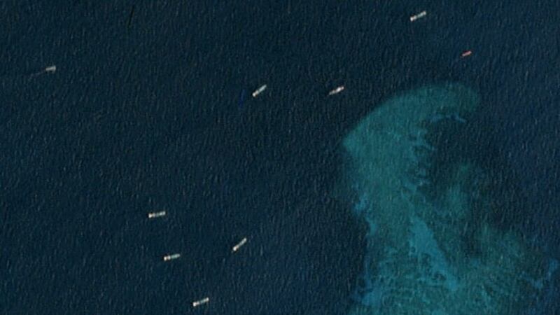 The exact number of Chinese ships deployed to the area very likely exceeds the five detected by RFA using ship-tracking software. Satellite imagery reveals many more vessels gathered in Union Banks although the identity of the vessels is unclear. About 12 ships moved to Hughes Reef between March 8 and March 13.