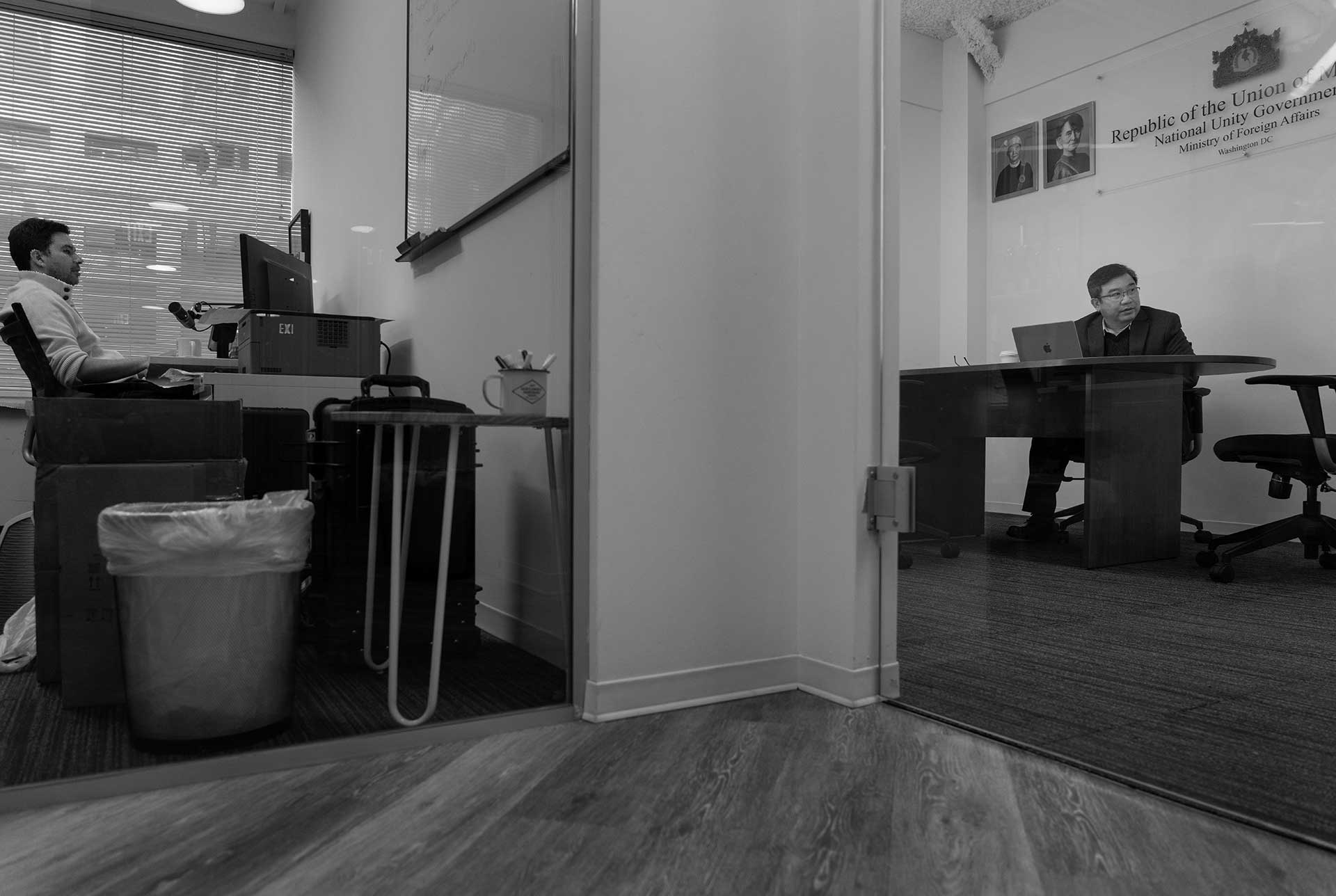 Since 2022, Moe Zaw Oo and NUG press aide Aye Chan Mon, 27, have run the NUG’s lobbying efforts out of a tiny office in a workshare space near the White House.