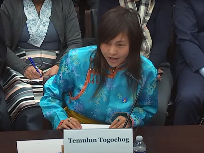 The young activist called on Congress to fund Mongolian-language programs on Voice of America, which currently do not exist. She said that would help the “minority within a minority” to more actively “preserve their language, culture and identity” from erasure.