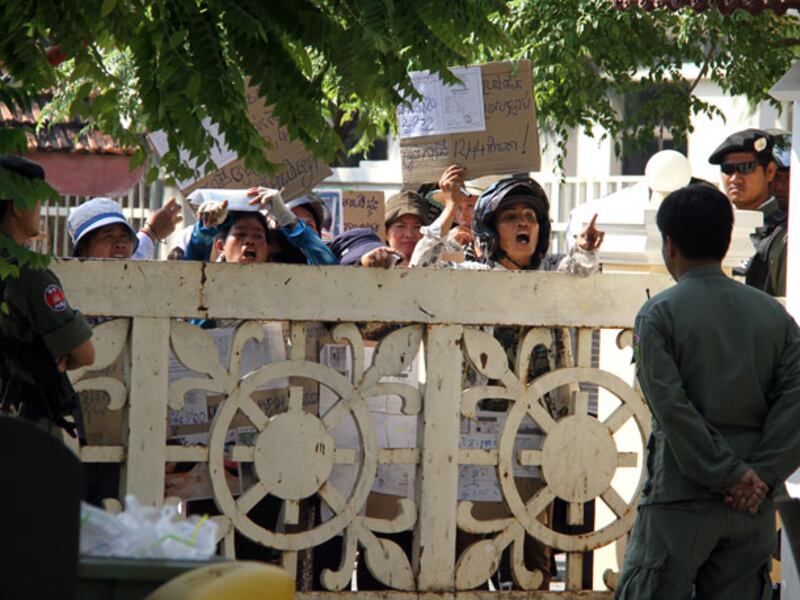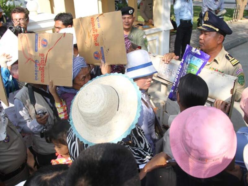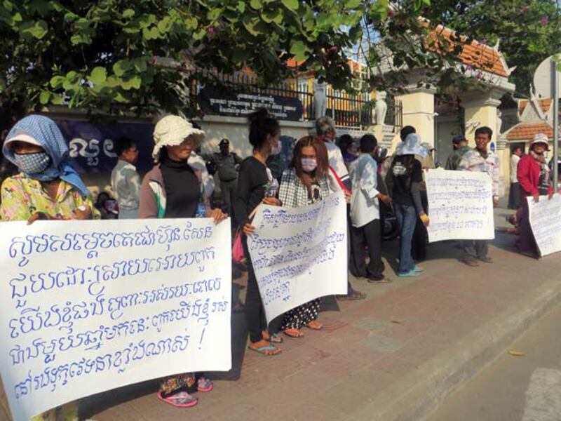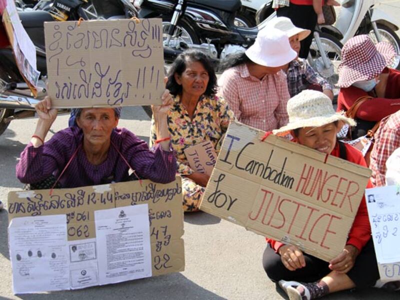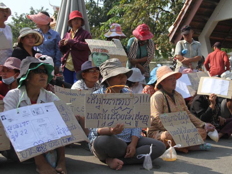 ៦. ក្រុមអ្នកភូមិបឹងកក់ កាន់បដាតវ៉ានៅមុខសាលារាជធានីភ្នំពេញ។ ដោយ មុំ សុផុន