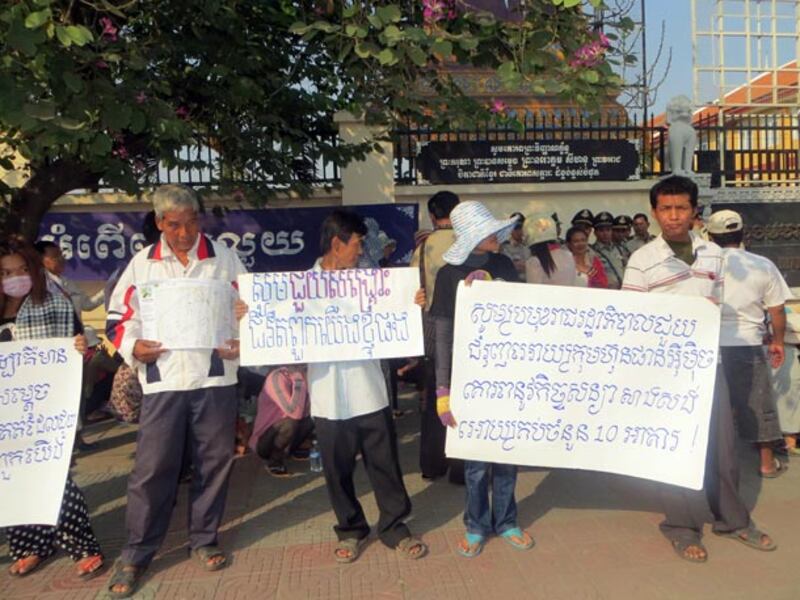 ១. ក្រុមអ្នកភូមិបឹងកក់ កាន់បដាតវ៉ានៅមុខសាលារាជធានីភ្នំពេញ។ ដោយ មុំ សុផុន