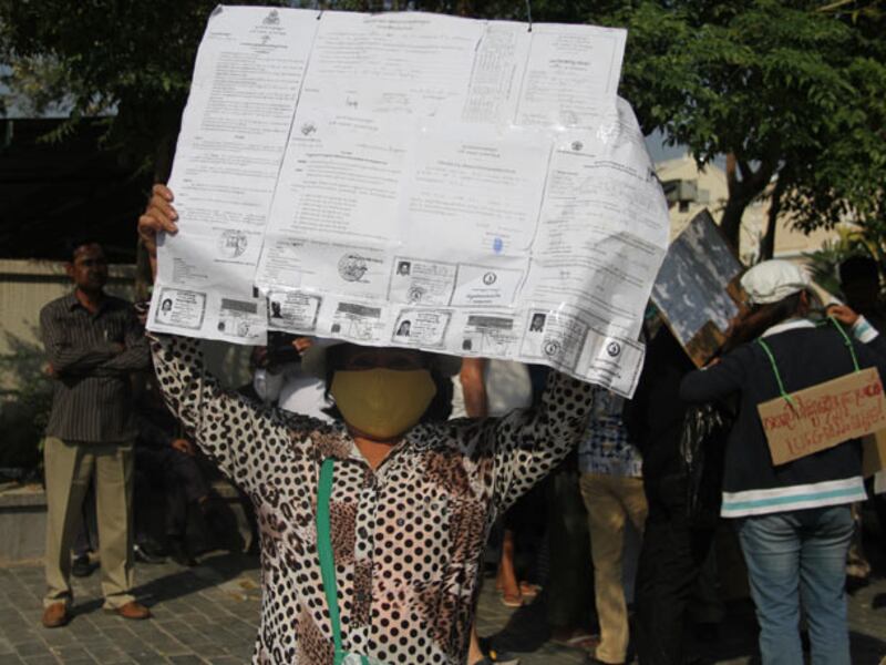 ៤. ស្ត្រីម្នាក់បានលើកបដាបង្ហាញពីឯកសារនានាបញ្ជាក់ថា គាត់បានរស់នៅតំបន់បឹងកក់ ដោយស្របច្បាប់។ ដោយ មុំ សុផុន