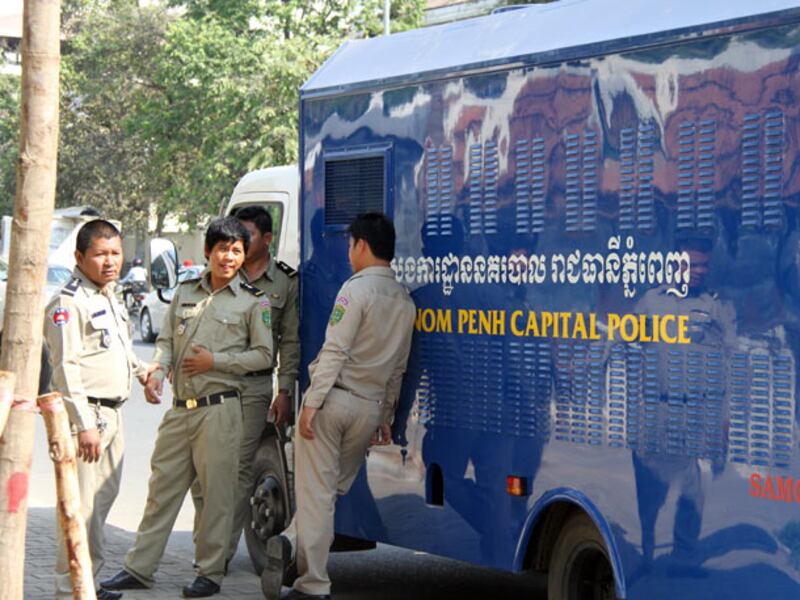 ១០. រថយន្តរបស់ស្នងការក្រុងភ្នំពេញ សម្រាប់ចាប់អ្នកតវ៉ា ចតនៅមុខសាលារាជធានីភ្នំពេញ។ ដោយ មុំ សុផុន
