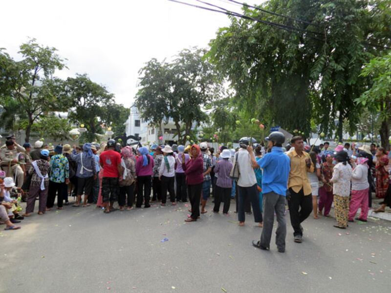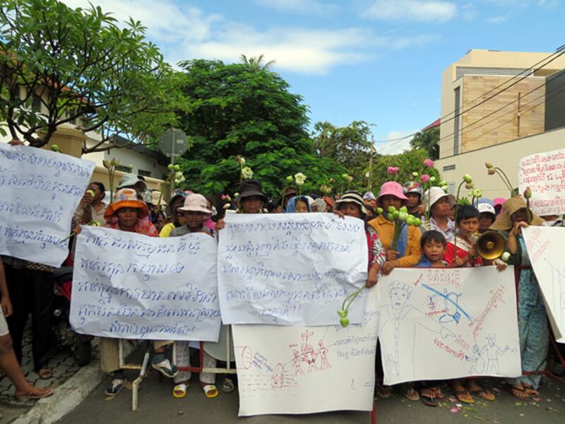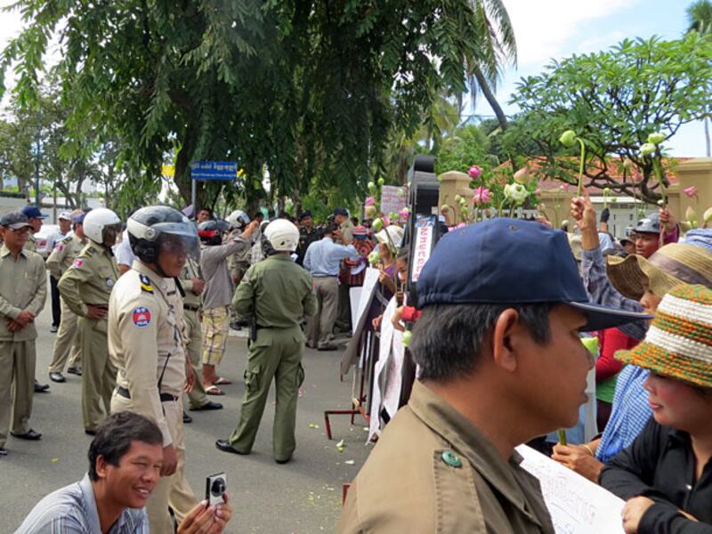 ប៉ូលិសរារាំងអ្នកបឹងកក់ និងអ្នកបុរីកីឡា តវ៉ា និងដាក់ញត្តិនៅមុខការិយាល័យសហភាពអឺរ៉ុប ក្បែរវិមានឯករាជ្យ។