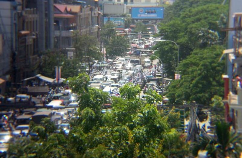 ១៦-ទិដ្ឋភាពចរាចរណ៍នៅលើផ្លូវព្រះមុន្នីរ៉េត ក្នុងថ្ងៃឃោសនាបោះឆ្នោតដំបូង។ ដោយ ឡេង ម៉ាលី