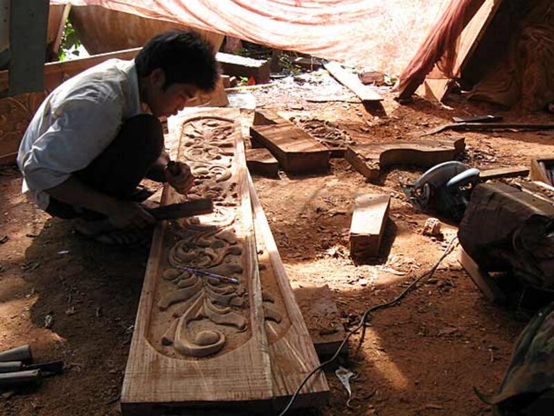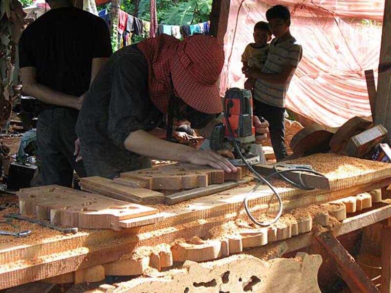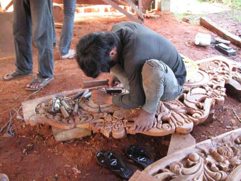 ៤-កម្មករដាប់រូបចម្លាក់ធ្វើពីឈើប្រណិតគ្រញូង។