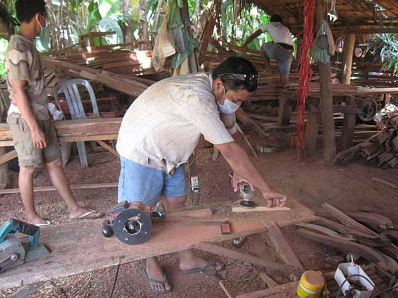 ២-កម្មករអារច្រៀកឈើធ្វើជើងកៅអីសាឡុង។