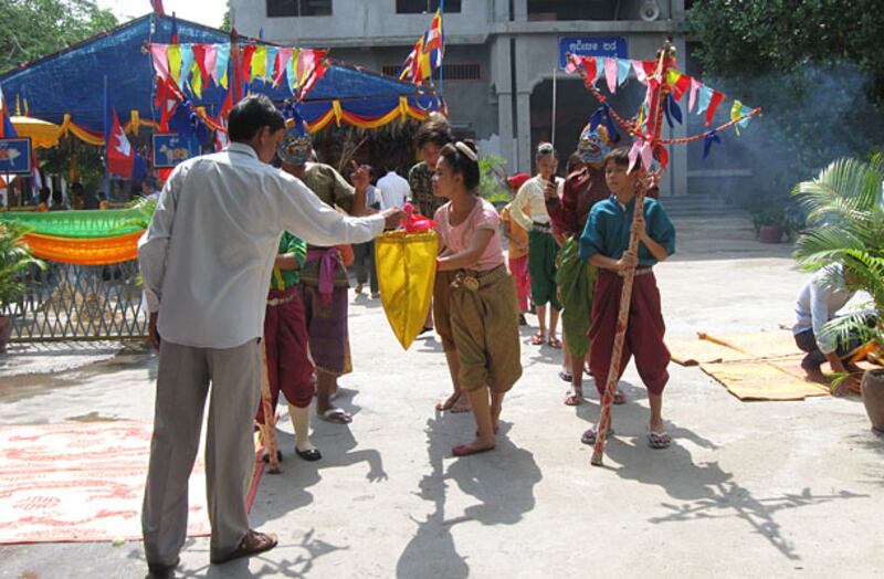 ៦របាំត្រុដិសម្ដែងនៅក្នុងវត្ត។