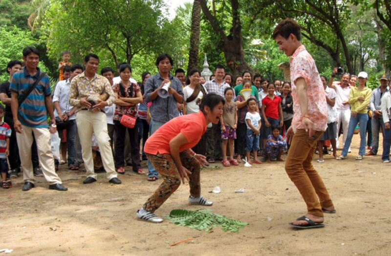 ថ្ងៃទី១៥ មេសា ជាថ្ងៃបុណ្យចូលឆ្នាំថ្ងៃទី២។ នៅក្នុងរាជធានីភ្នំពេញ មានសភាពស្ងប់ស្ងាត់ នៅតាមផ្លូវ តាមផ្សារ តាមភោជនីយដ្ឋាននានា បានបិទទ្វារដែរ តែមានគេលេងល្បែងប្រជាប្រិយតិចតួចដោយកន្លែង ដូចជានៅតាមវត្ត នៅរមណីយដ្ឋានវត្តភ្នំជាដើម។ រូបភាពដោយ អ៊ុក សាវបូរី