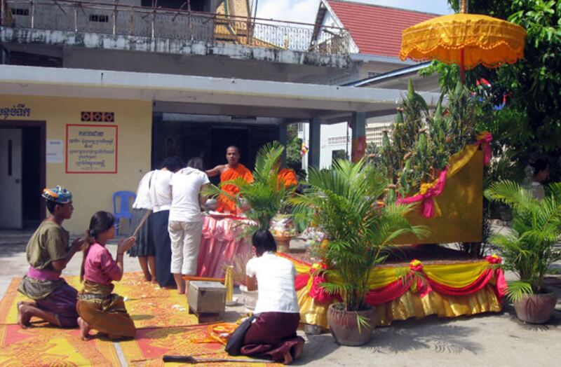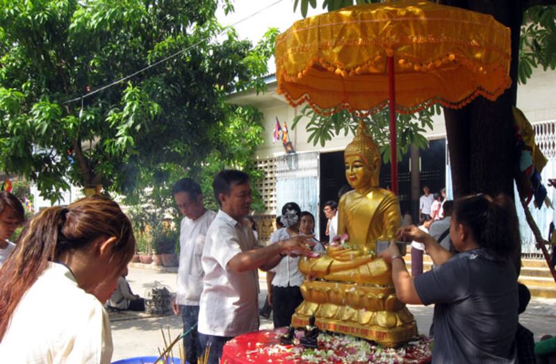 ៥ពលរដ្ឋធ្វើពិធីស្រង់ព្រះ នៅក្នុងវត្ត។
