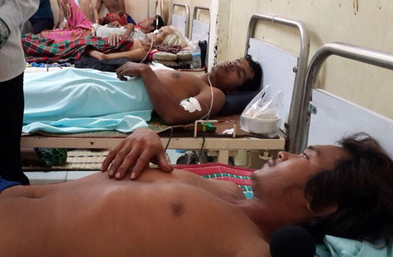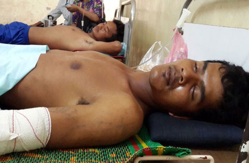 បុរសម្នាក់ដែលត្រូវគ្រាប់ត្រង់ភ្លៅខាងស្តាំ កំពុងសម្រាកនៅមន្ទីរពេទ្យកាល់ម៉ែត្រ ឈ្មោះ អ៊ុន សុឃាង អាយុ ២៧ឆ្នាំ បញ្ជាក់ថា លោកស្ថិតនៅក្នុងក្រុមបាតុករជាច្រើនទៀត ដែលទាមទារឲ្យសមត្ថកិច្ចរើរបងលួសបន្លា រាំងទទឹងថ្នល់ចេញពីស្ពានអាកាសនោះ ក្នុងបំណងឲ្យពលរដ្ឋអាចធ្វើដំណើរបានស្រួល បន្ទាប់ពីកកស្ទះផ្លូវជាច្រើនម៉ោង។