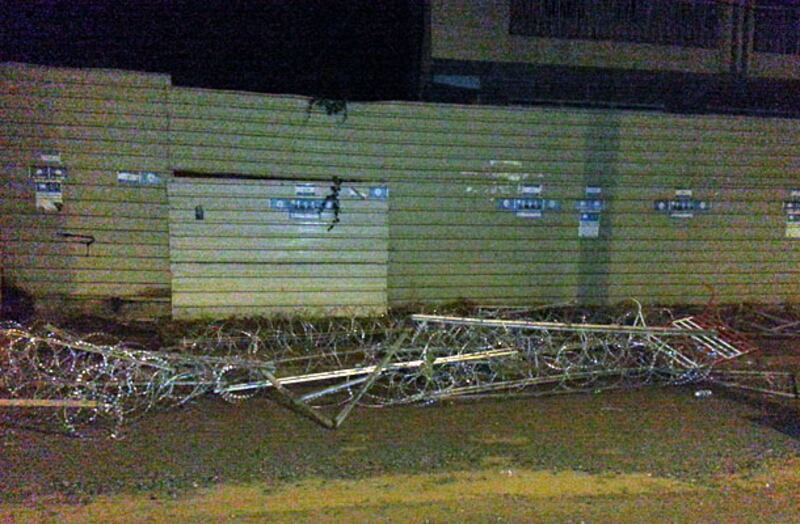 ៦-របងបន្លាលួសត្រូវក្រុមអ្នកតវ៉ារុញចេញពីផ្លូវ។