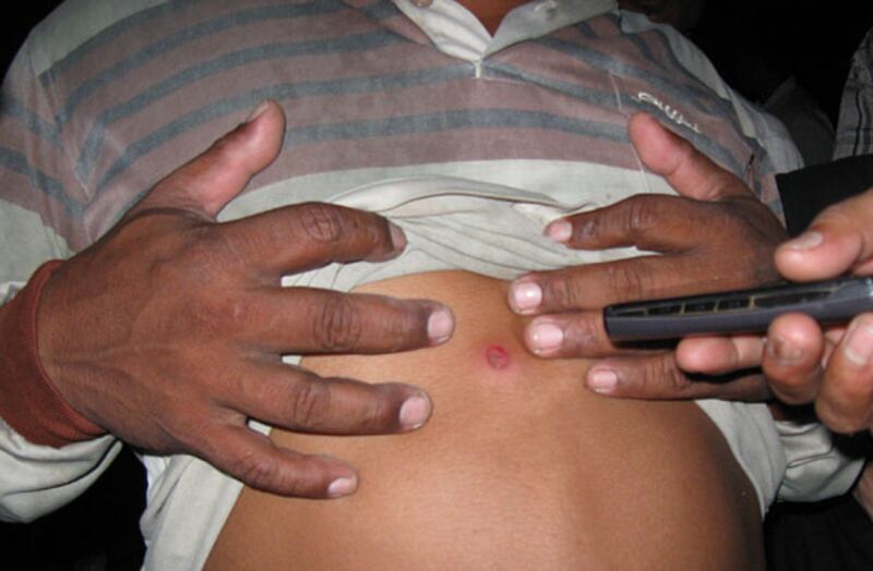 ៧-បុរសម្នាក់បង្ហាញស្នាមរបួសនៅពេលដែលគាត់នៅក្នុងហេតុការណ៍។