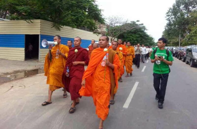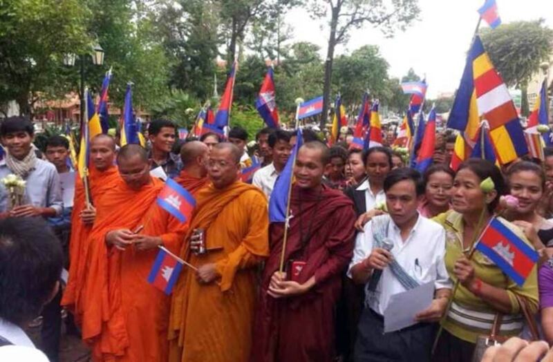 អ្នកយកព័ត៌មានវិទ្យុអាស៊ីសេរី អ្នកស្រី ទេព សុរ៉ាវី អ្នកស្រី ខែ សុណង និងលោក ឡេង ម៉ាលី រាយការណ៍អំពីពិធីជួបជុំ និងហែក្បួនបន់ស្រន់សុំឲ្យមានសន្តិភាព និងយុត្តិធម៌នេះ៖