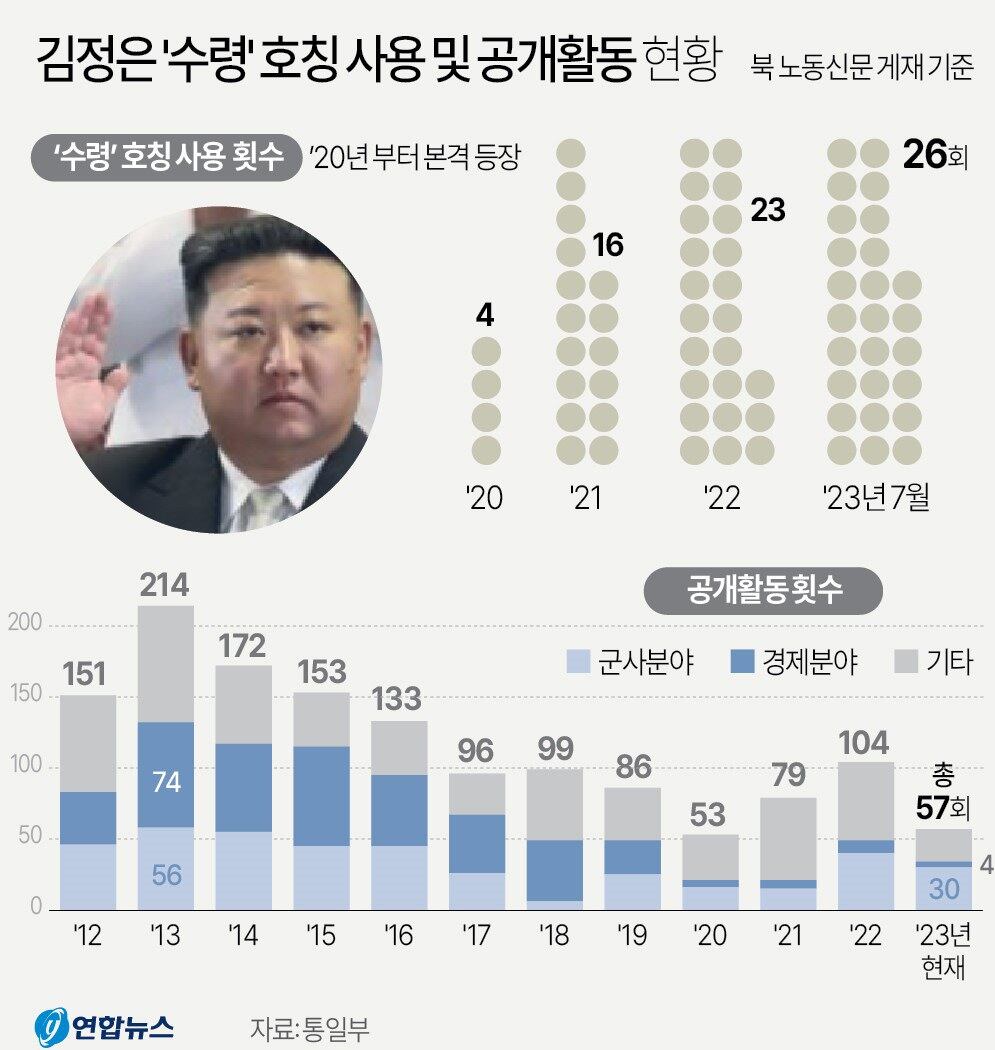 북한에서 김씨 일가를 우상화할 때 ‘수령’ 칭호를 쓰는 점을 감안하면 당국이 김정은 우상화에 속도를 내고 있다는 분석입니다.
