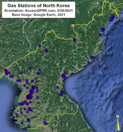 북한의 각 지역별 주유소 위치와 개수도 그의 주요 관심사 중 하납니다.