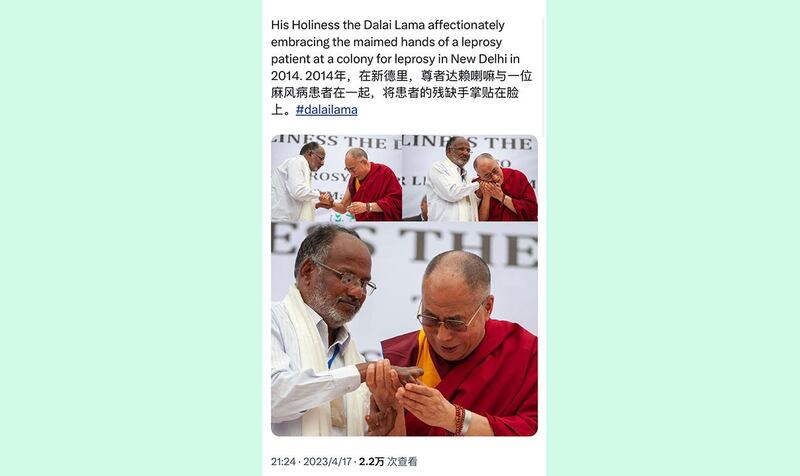 这让我想起美国之音粤语网,在较早报道这个事件的时候,转载了我的第一条推文,但我注意到,报道通篇都写“达赖”而不是达赖喇嘛,我于是发推:“谢谢引述我的评论。但有个建议,当提到尊者请写‘达赖喇嘛’而不是达赖。达赖喇嘛是全称,如果了解西藏文化就会知道。美国之音是正常的媒体,在以媒体的方式报道时,不应该模仿中共素来对尊者的轻蔑。谢谢。”
