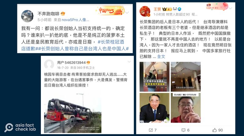甚至早在2016年中国旅游团游览车起火案,也有微博用户警告中国游客在台遇害,是日裔台湾人组织操控。