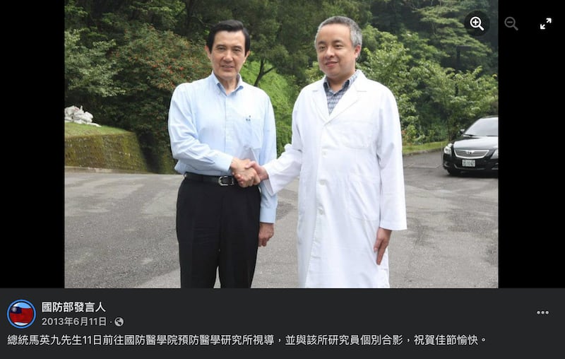 前总统马英九造访预医所的纪录则可在台湾媒体Ettoday2013年6月17日的报道中找到,当时预医所取得中国H7N9病毒株,P4实验室正在进行动物实验,准备量产20万剂疫苗,马英九前往预医所鼓励军方人员的奉献。相关照片也可在国防部发言人脸书找到。当时中国大陆官方媒体人民网甚至也有转引消息,以" 马英九视察台预医所 揭台军神秘生化防护机"为题进行报道。