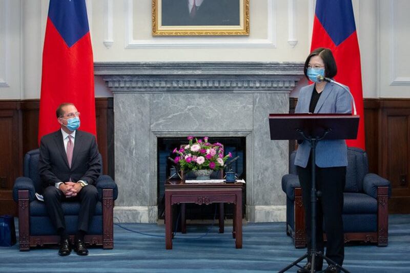 阿札:“我这次代表特朗普总统造访台湾,要特别凸显台湾对于世界公卫社群的重要地位,还有展现台湾过去与未来能做出的贡献。最后要强调美国和台湾之间,强劲与密切的伙伴关系和友谊。”