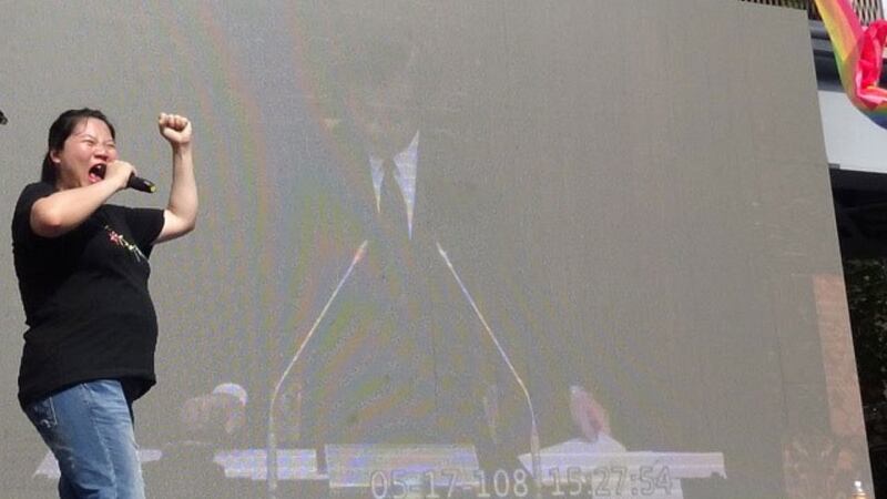 台湾立法院长苏嘉全17号敲下议事槌,宣布国会三读通过同性婚姻专法之后,守候在场外的上万名支持同性恋平权者,高呼“婚姻平权”、“亚洲第一”,有人拥抱落泪,还有人开香槟庆祝。