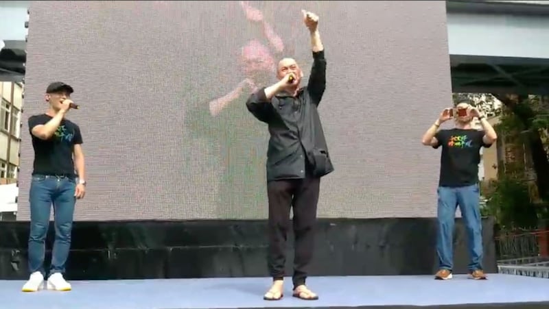 苹果手机代工大厂、和硕董事长童子贤也出现在人群,兴奋地说:“台湾是一个可爱的地方。”
