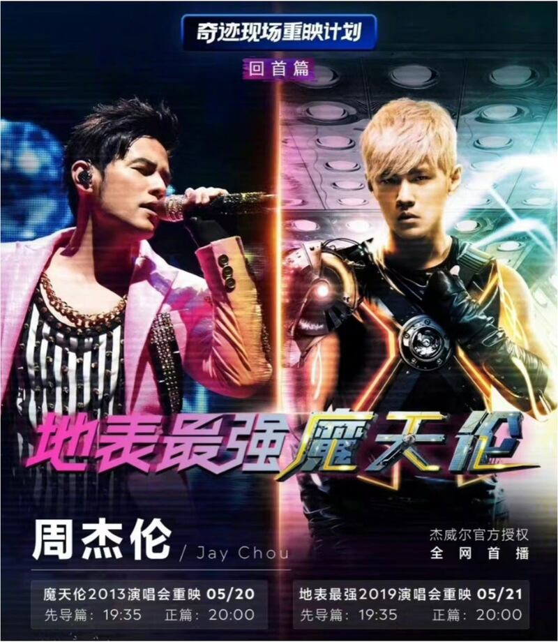 于此同时,红遍华人圈的台湾歌手周杰伦“魔天伦2013演唱会”及“地表最强2019演唱会”,5月20日、21日在腾讯QQ音乐平台重映。有报导称,预约就有二千万人,涌入观看突破五千万。一半内地网民在晒恩爱,一半在晒跟周杰伦的青春回忆。不少网民感叹,华语歌坛后继无人。