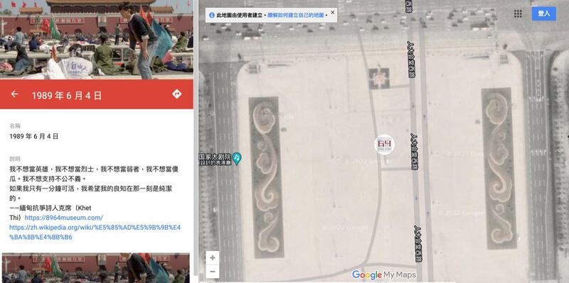 天安门标记“六四” 台北标记“中华民国国旗” 表达反共立场