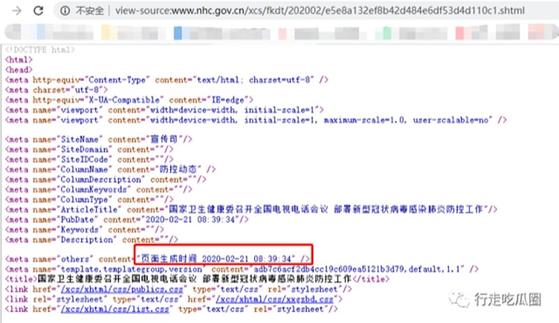 卫健委网站上这篇新闻稿,显示发布时间为1月14日。但是工科出身的作者解码,这篇文章其实是2月份才挂上网站的,实际发布时间在2月21日之前的某一天,最后修改时间是2月21日早8点39分。似乎是在事后想要做出弥补澄清。