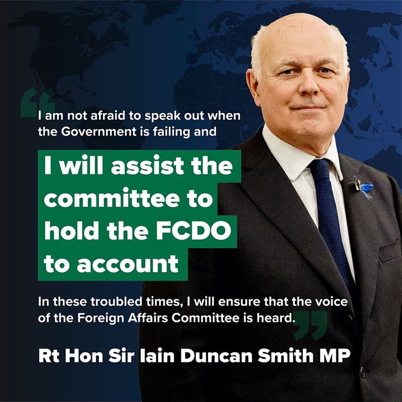 下议院预计将于10月12日投票选出外委会主席,而根据惯例,只有保守党议员可以成为外委会下任主席。